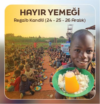 Regaib Kandilinde belirli bir isme göre yemek ikram etmek isterseniz en az 200 kişilik (15.000 TL) bağışta bulunmanız gerekmektedir.